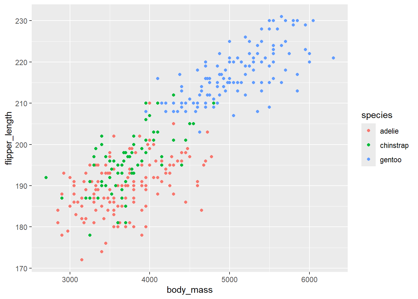 gg_penguin + geom_point(aes(x = body_mass, y = flipper_length,